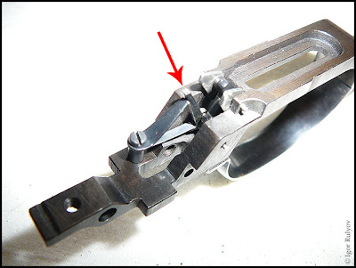 Die TOZ-35 ist mit einem Stecher ausgerüstet (oder wie es in ehm. UdSSR bekannt war – «der Abzug mit dem Schneller/Akzelerator». Ja, ja – Wort für Wort). Beim Anstechen leidet das unten markierte Detail unter einem großen Druck.